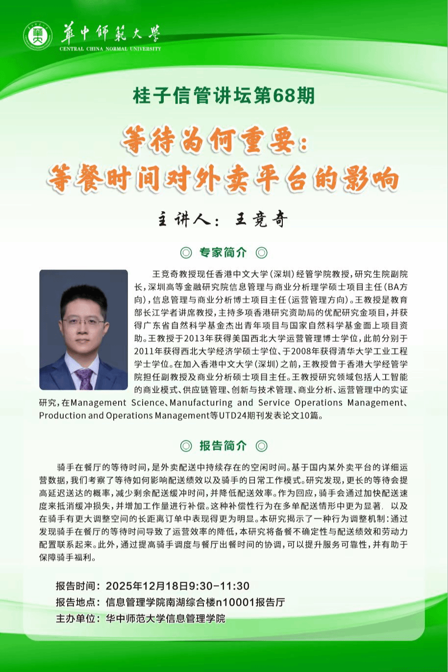 香港中文大学(深圳)——王竞奇:等待为何重要:等餐时间对外卖平台的影响